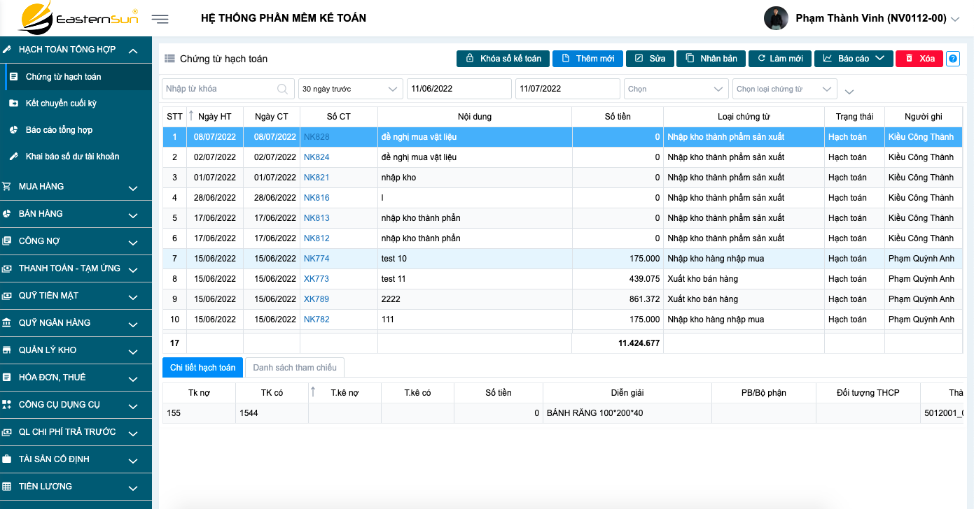 Bên cạnh đó, Eastern Sun số hoá toàn bộ các thao tác, dễ dàng sử dụng chỉ qua việc bấm, chọn hay kéo thả, hạn chế tối đa cá thao tác nhập liệu thủ công.