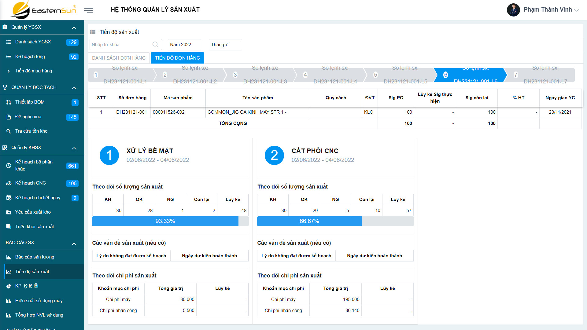 Quản lý chi tiết tiến độ theo từng đơn hàng, sản phẩm theo thời gian thực nhờ khả năng kết nối dữ liệu báo cáo từ bộ phận sản xuất