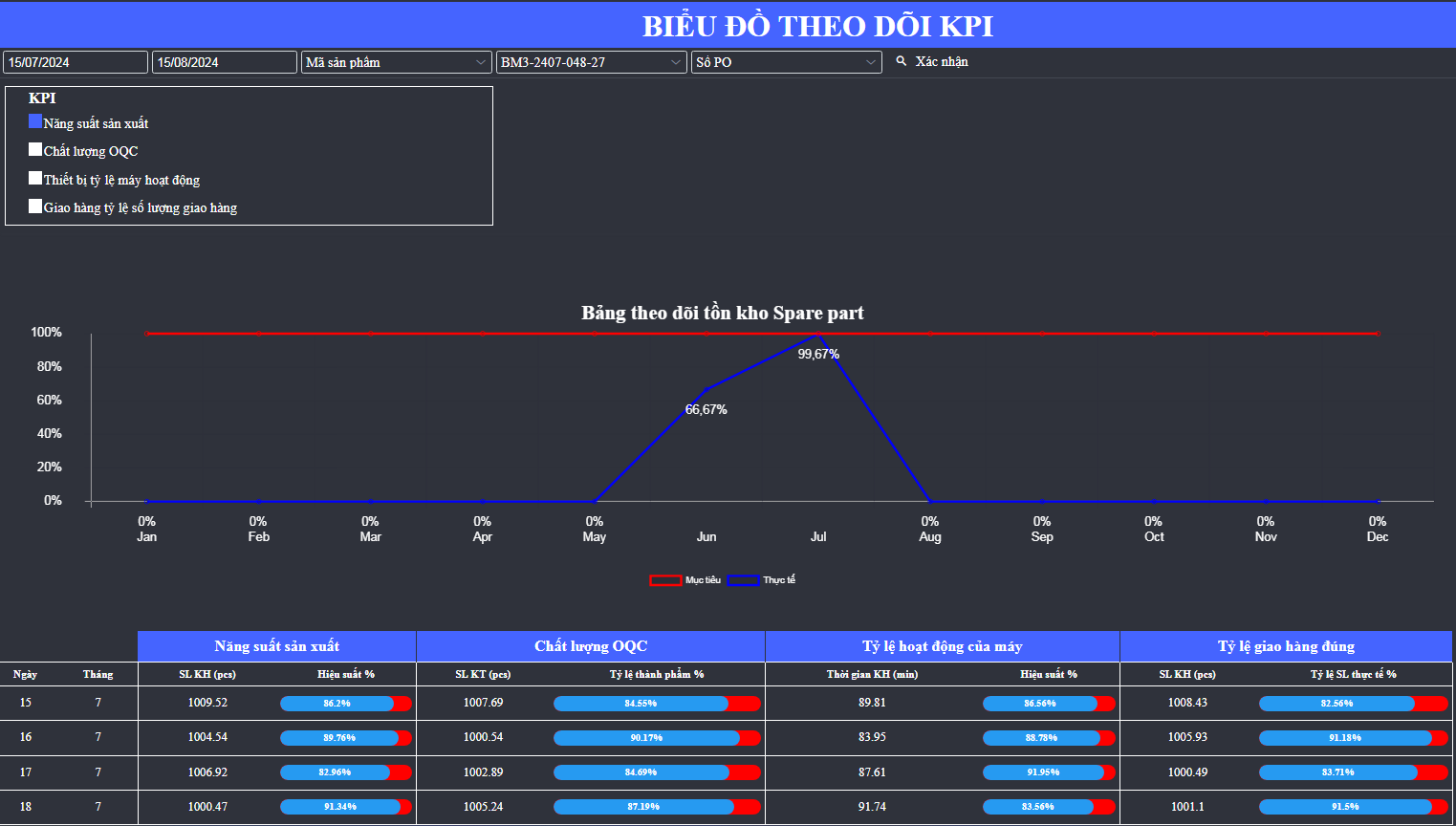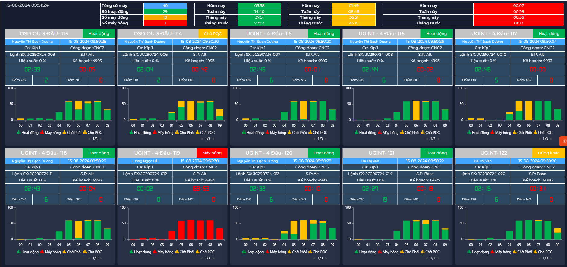 • Quản lý hiệu suất, theo dõi tình trạng sản xuất của từng máy
