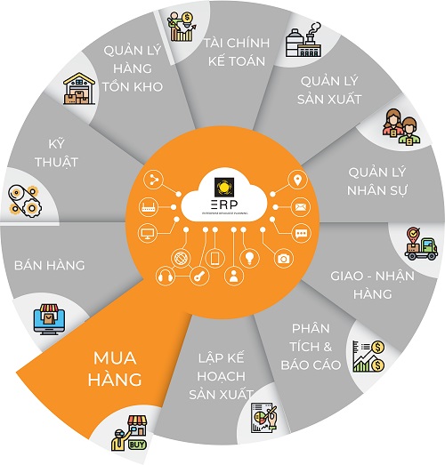 Quản lý đơn hàng sản xuất, định mức, giá thành, quy trình kế hoạch sản xuất, Quản lý chất lượng (QC)…