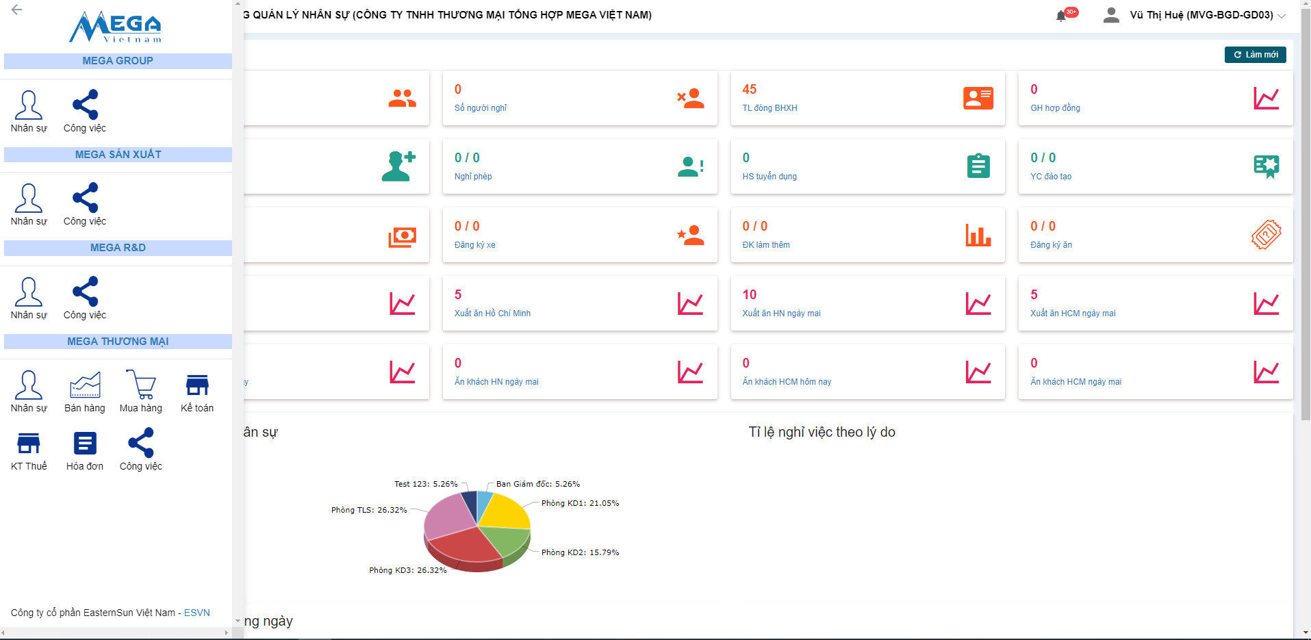 Giao diện hệ thống Eastern Sun ERP của nhà máy Mega Vietnam Business